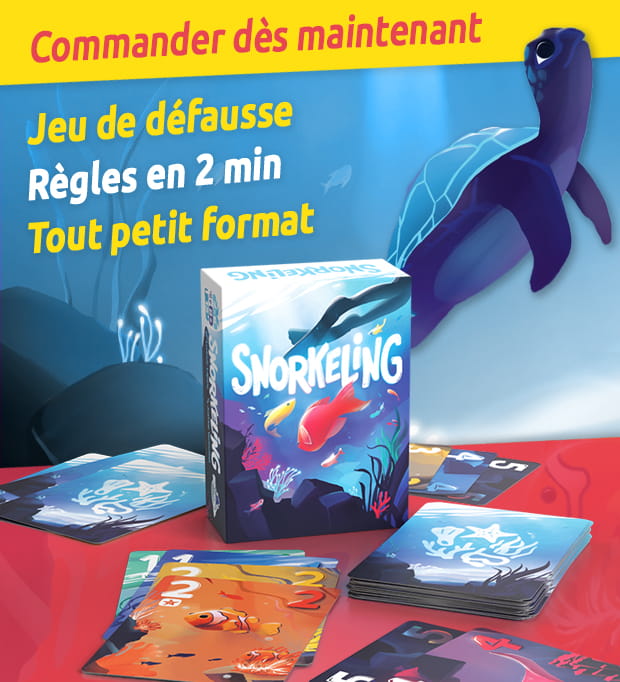 Plongez dans Snorkeling, un jeu de défausse rapide et accessible, qui vous emmène explorer les fonds marins en apnée. Votre objectif : rester sous l’eau le plus longtemps possible en jouant habilement vos cartes, tout en forçant vos adversaires à remonter à la surface avant vous. Simple à expliquer mais riche en interactions, Snorkeling propose des parties dynamiques, pleines de rebondissements et de choix tactiques. Un jeu idéal pour les soirées entre amis, en famille ou pour animer une table en quelques minutes, qui allie plaisir immédiat et vraie tension ludique.